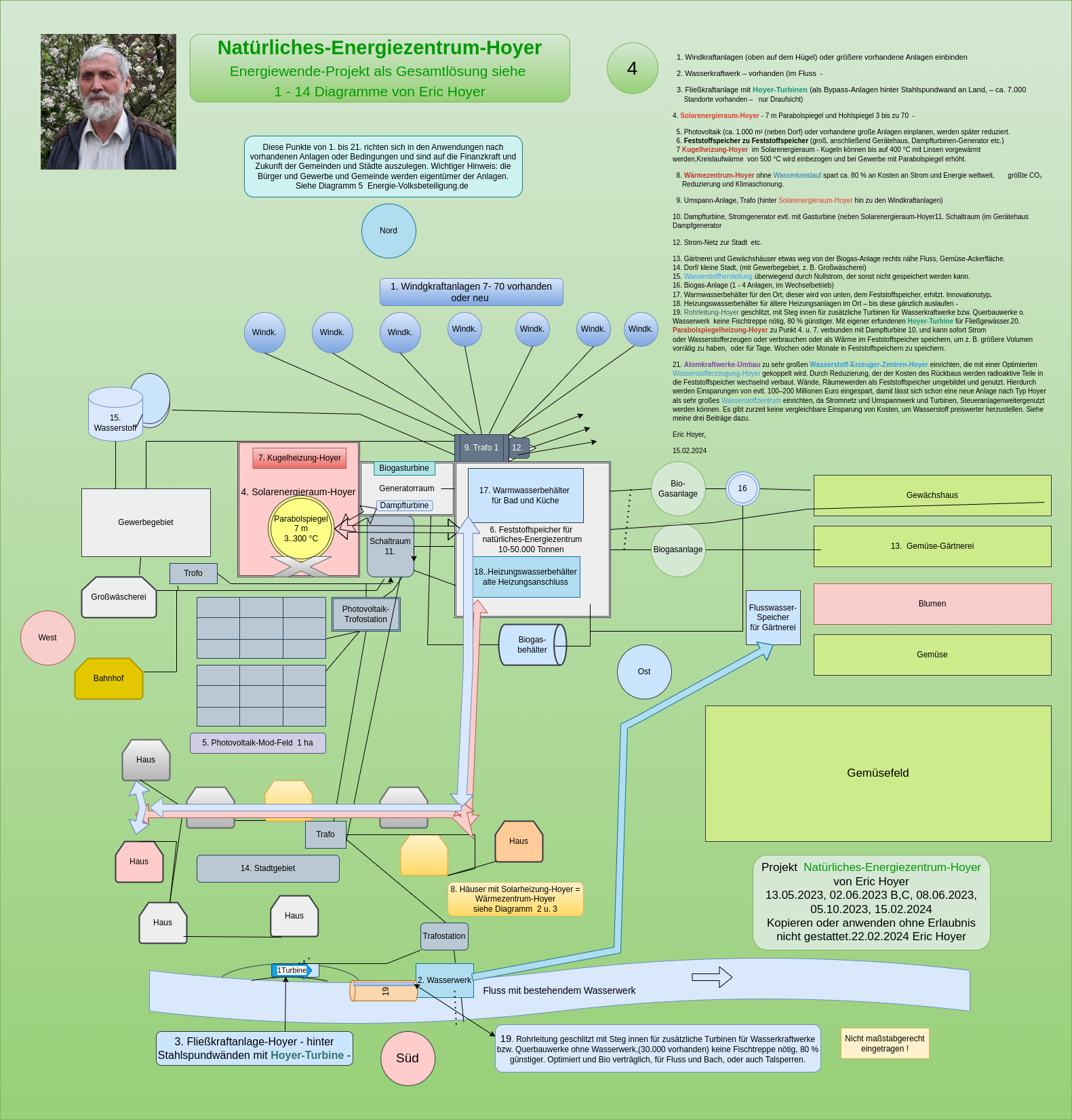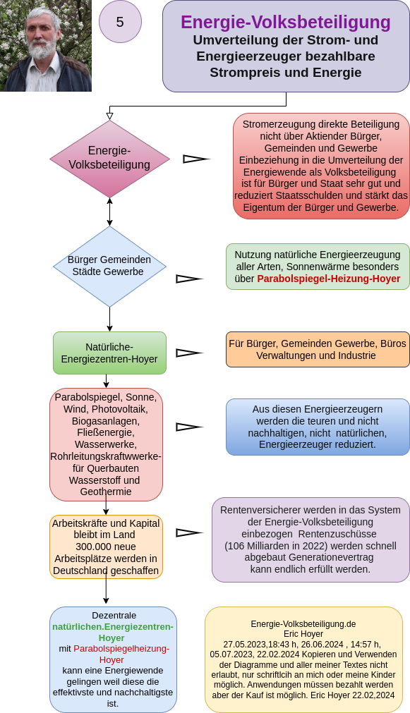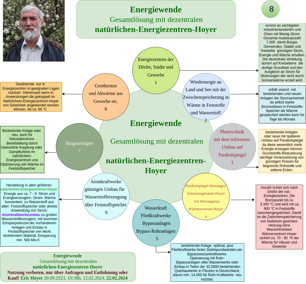 Я, Эрик Хойер, разработал полноценную техническую систему, которая позволяет осуществить глобальный энергетический переход за счёт использования солнечного тепла. В центре стоит прямое, децентрализованное и с минимальными потерями использование солнечной энергии – с помощью методов, которые технически зрелы, экономически эффективны и применимы по всему миру.
